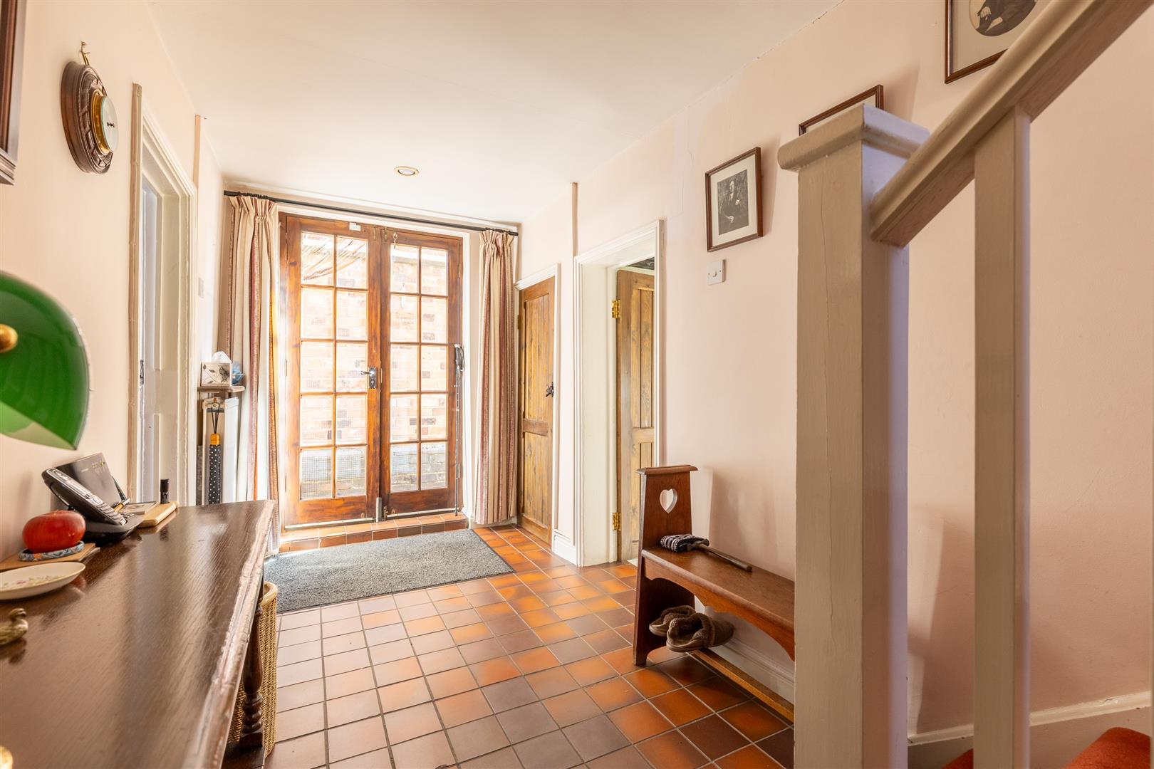 Dimensions: 5.03m x 1.85m (16'6" x 6'1"). Double doors providing access to Welsh Row and courtyard garden. Quarry tiled floor, understairs store, built in cloaks cupboard, inset ceiling lighting, radiator.