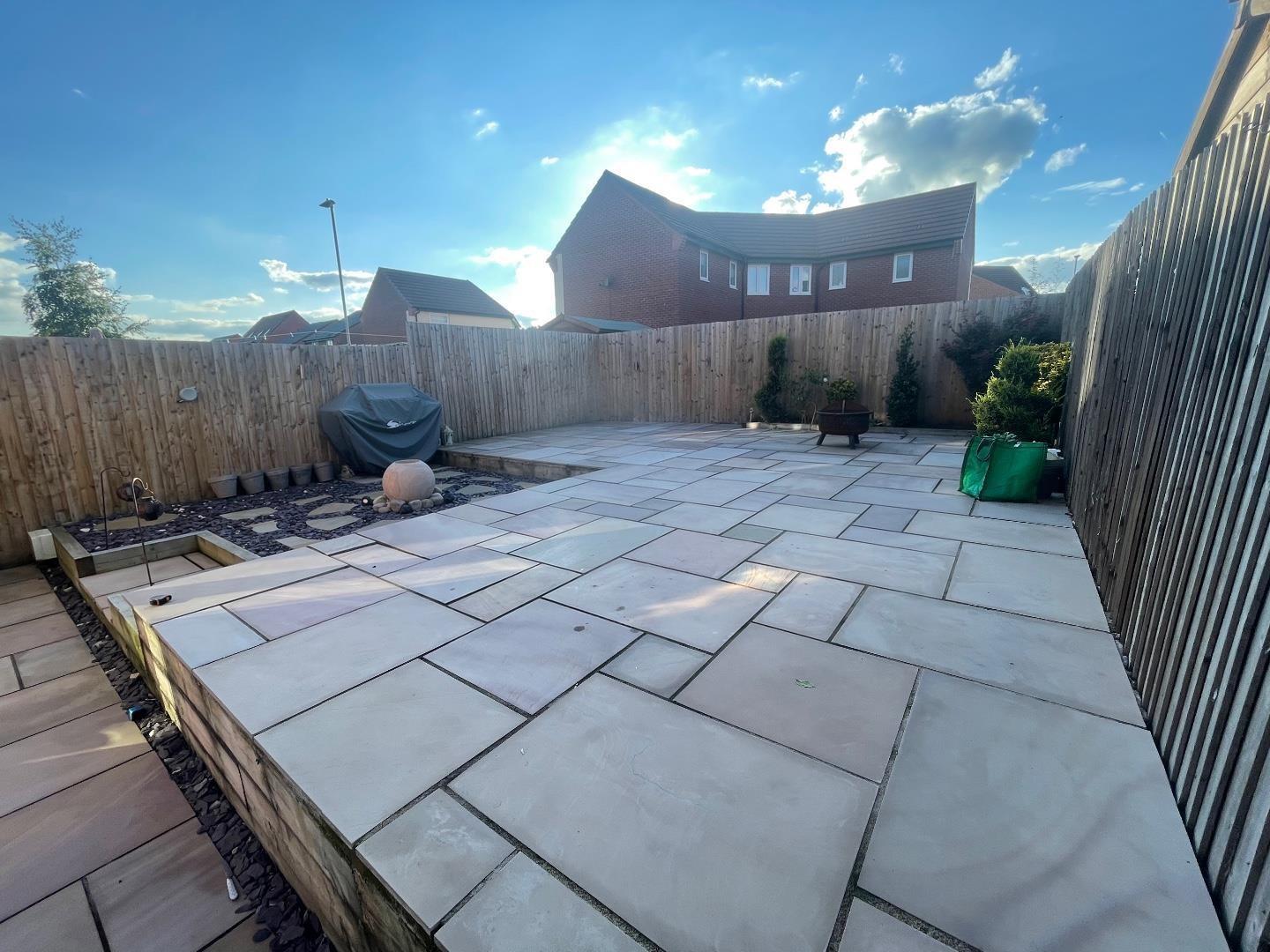 Driveway with shared approach, providing off-road parking for approximately three cars. Rolex electric car charging point. Astro to side, slate path Upper and lower terraced patio area Single external power point and cold-water tap Water feature Westerly facing rear garden Close boarded boundary fences Open front aspect