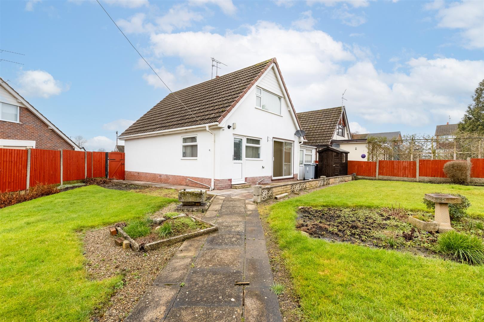 Head of the cul-de-sac, large corner garden plot able to benefit from a southerly aspect at the rear, front stone and paved driveway providing off-road parking, artificial grass area. Link detached garage (single - 16’3” x 8’0”) - with up-and-over door and uPVC double glazed rear door and window, rear garden via side entrance gate, paved patio and pathways providing natural lawn sections in addition to a water feature, rockery and various stocked borders, cold water tap.