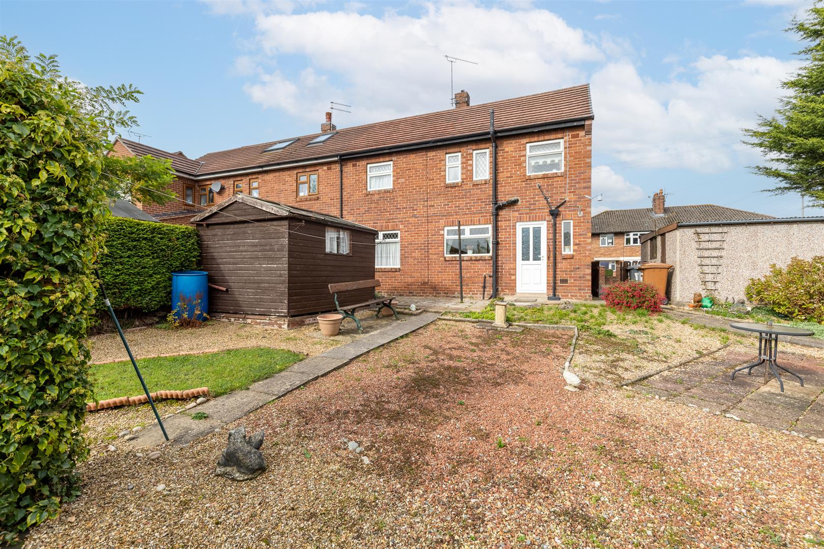 See attached plan. Off road parking - paved and stoned driveway, pre cast single garage 18'1" x 9'3", front and rear lawned gardens, mature trees and bushes, timber garden shed, paved patio area and pathways, South Easterly facing rear garden.