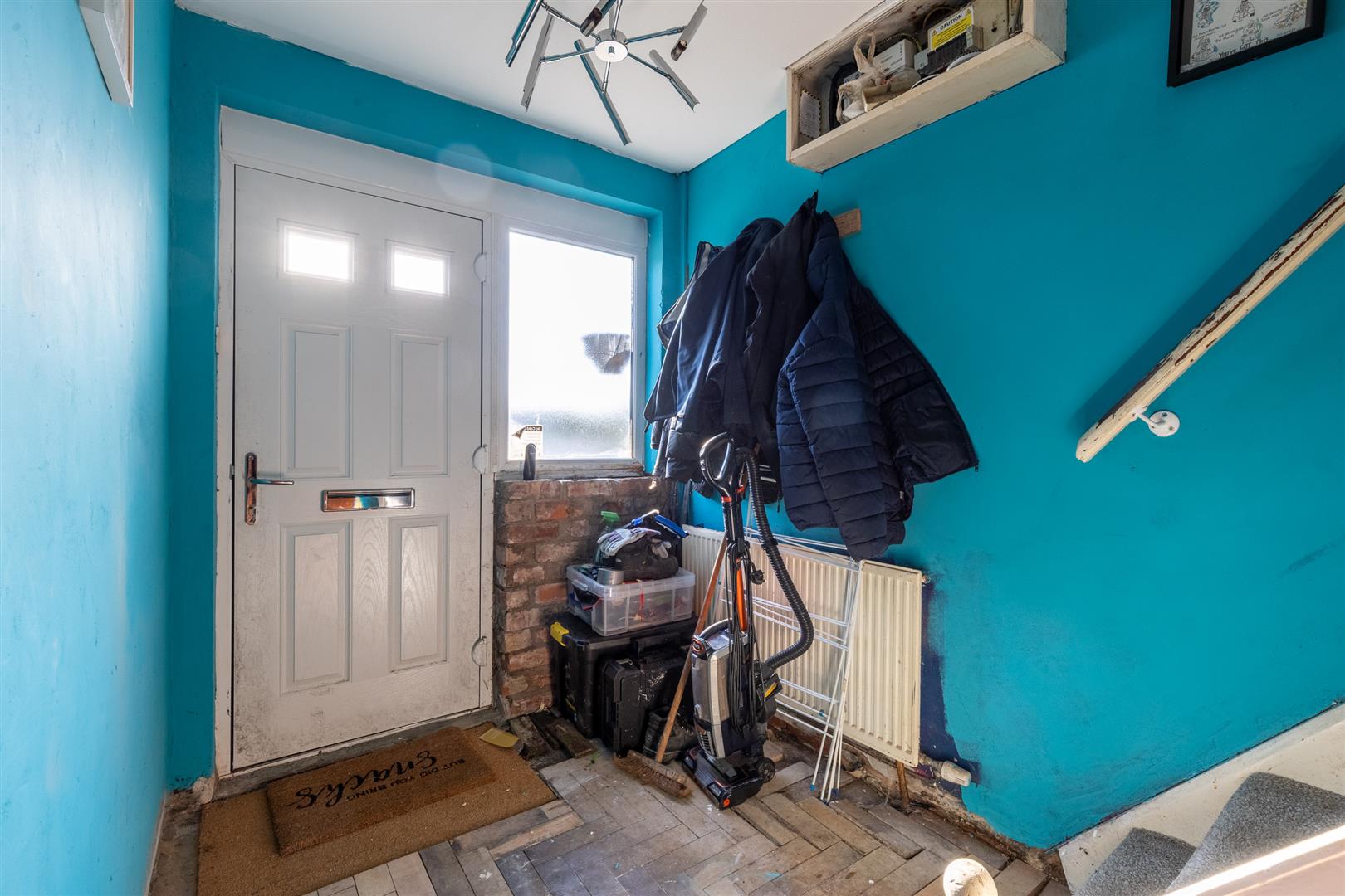 Upstairs, you’ll find three generously sized bedrooms. Two are comfortable double rooms and the third is a spacious single. All rooms benefit from double-glazed windows, radiators, and either carpeted or laminate flooring. The family bathroom comprises a panelled bath, separate shower cubicle, low flush W/C, vanity unit, tiled flooring and walls, and a frosted double-glazed window to the front