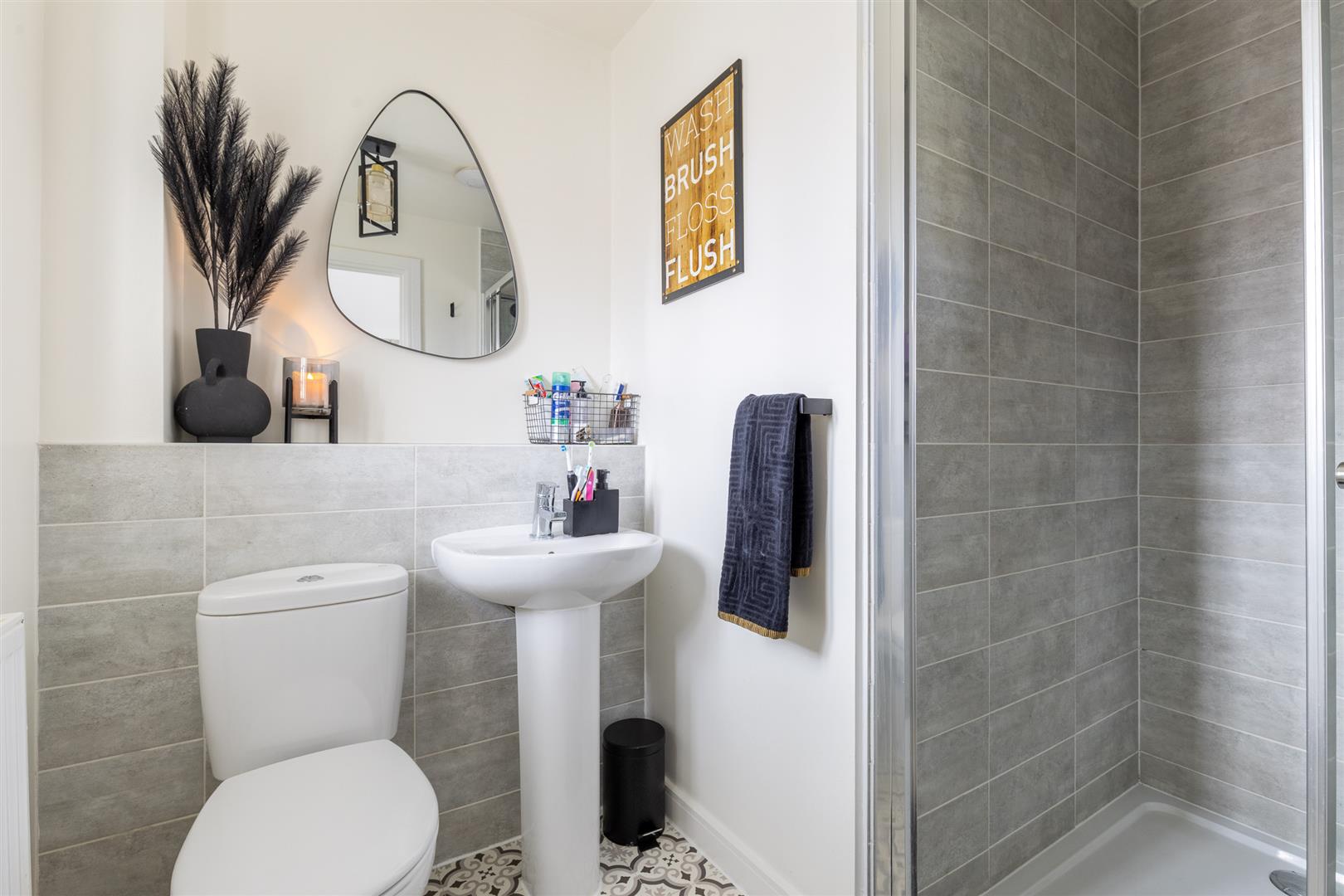 Upstairs, the property offers four double bedrooms, one of which features built-in wardrobes. The spacious principal bedroom benefits from a private en-suite shower room comprising a low flush W/C, pedestal sink, and a fully tiled shower cubicle. The family bathroom includes a three-piece suite with a panelled bath, pedestal sink, and low flush W/C. All bedrooms are finished with carpeted flooring, radiators, light fittings, and double-glazed windows. Both bathrooms feature laminate flooring, frosted double-glazed windows, extractor fans, radiators, and ceiling lighting.