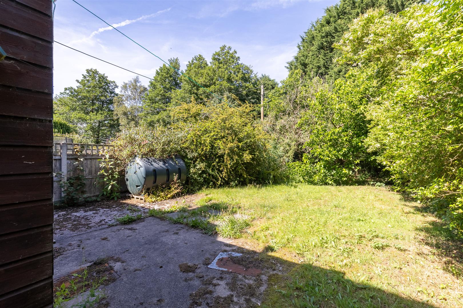 The front garden is lawned with two Fir trees. The rear South east facing garden, extends to about 60 feet and enjoys a woodland backdrop. It is lawned with shrubs.