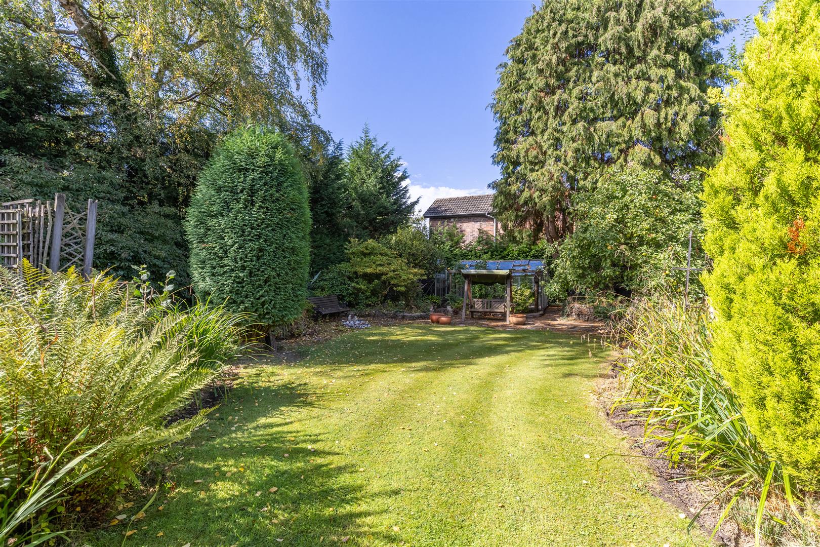 The gardens have matured over the years and provide a lovely setting. They are lawned with herbaceous and flower borders, specimen trees, crazy paved seating area, mature trees including fir and apple.