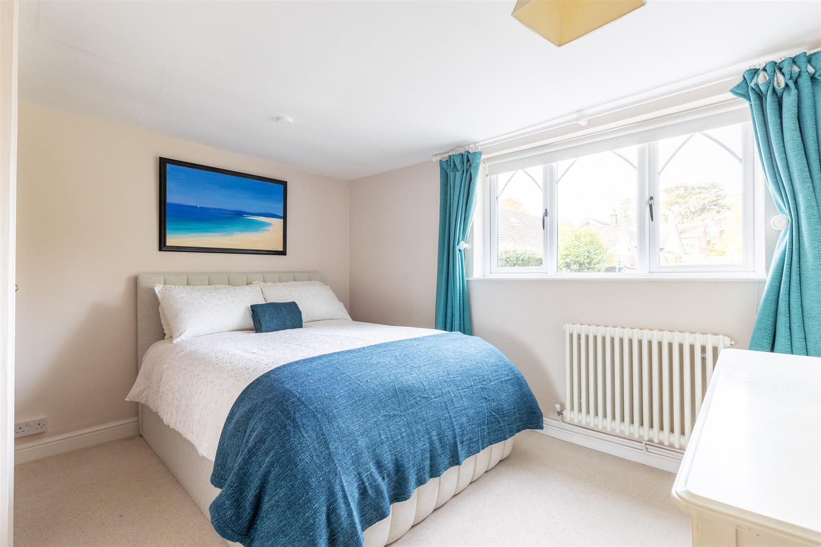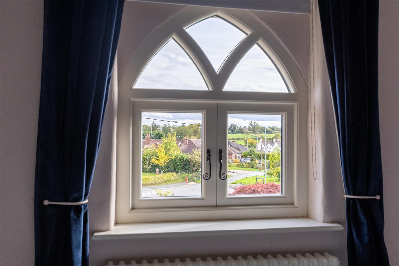Dimensions: 3.68m x 3.05m (12'1" x 10'0"). Hardwood coated Gothic style double glazed window enjoying a lovely aspect over Audlem village and countryside beyond, built in triple wardrobe, period style radiator.