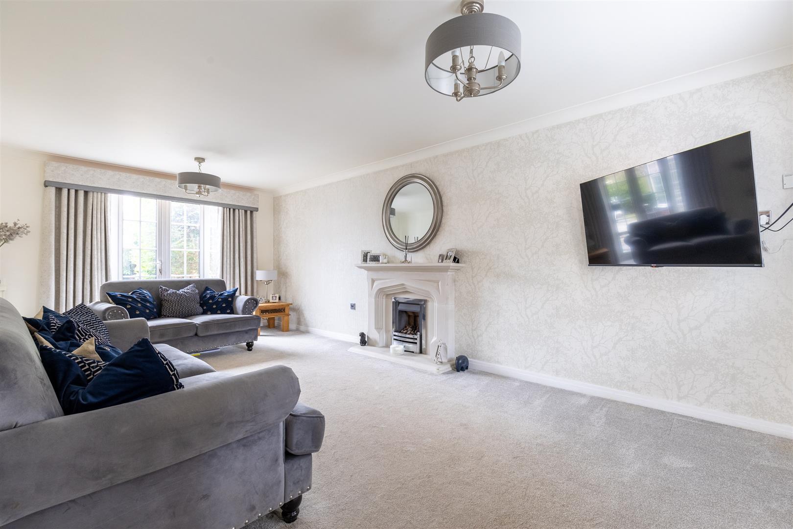 This appealing detached house was built in 2002 by Bovis Homes of brick under a tiled roof and is approached over sweeping tarmacadam drive (shared with numbers 36 and 40). Layout wise this is a fabulous home with five double bedrooms, two ensuites and a well appointed bathroom. The wow factor is provided at ground floor level with a terrific open plan, high specification, kitchen/breakfast/family room with French windows overlooking the 45 feet flagged patio. The 20 foot living room also opens directly onto the rear garden.