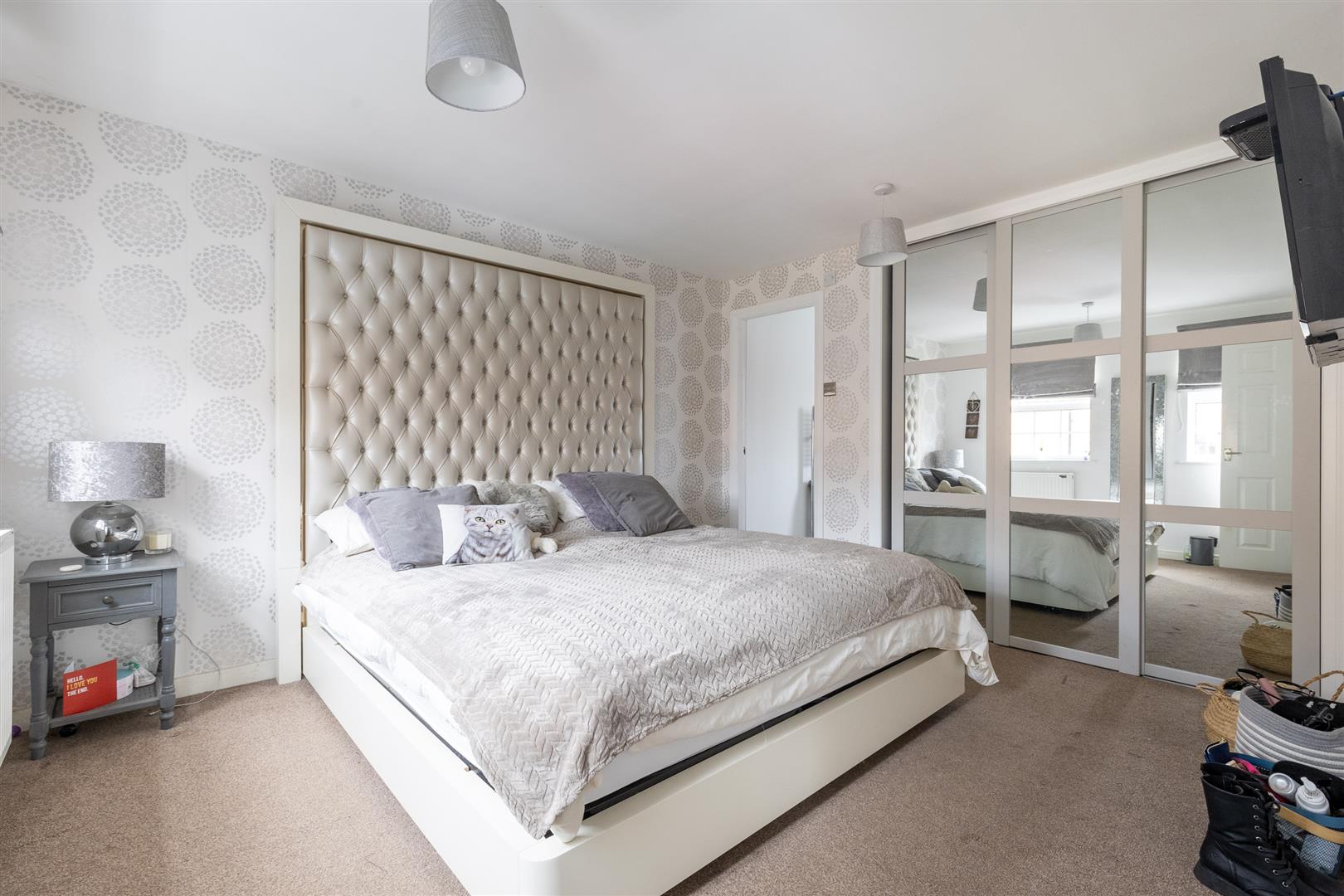 Dimensions: 3.71m x 3.23m (12'2" x 10'7"). Built in triple wardrobe with sliding mirrored doors, two double glazed windows, radiator.