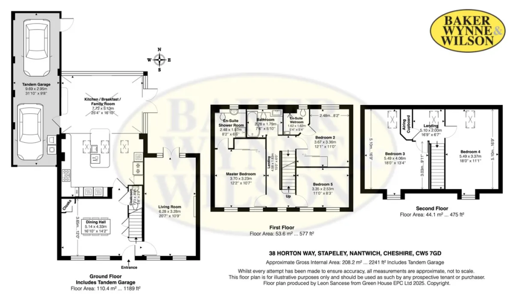 Dining Hall, Living Room, Superb Kitchen/Breakfast/Family Room, Principle Bedroom with Ensuite Shower Room, Bedroom No. 2 with Ensuite Shower Room, Three Further Double Bedrooms, Bathroom, Attached Tandem Double Garage, Gas Central Heating, uPVC Double Glazed Windows, Car Parking Space, Gardens.