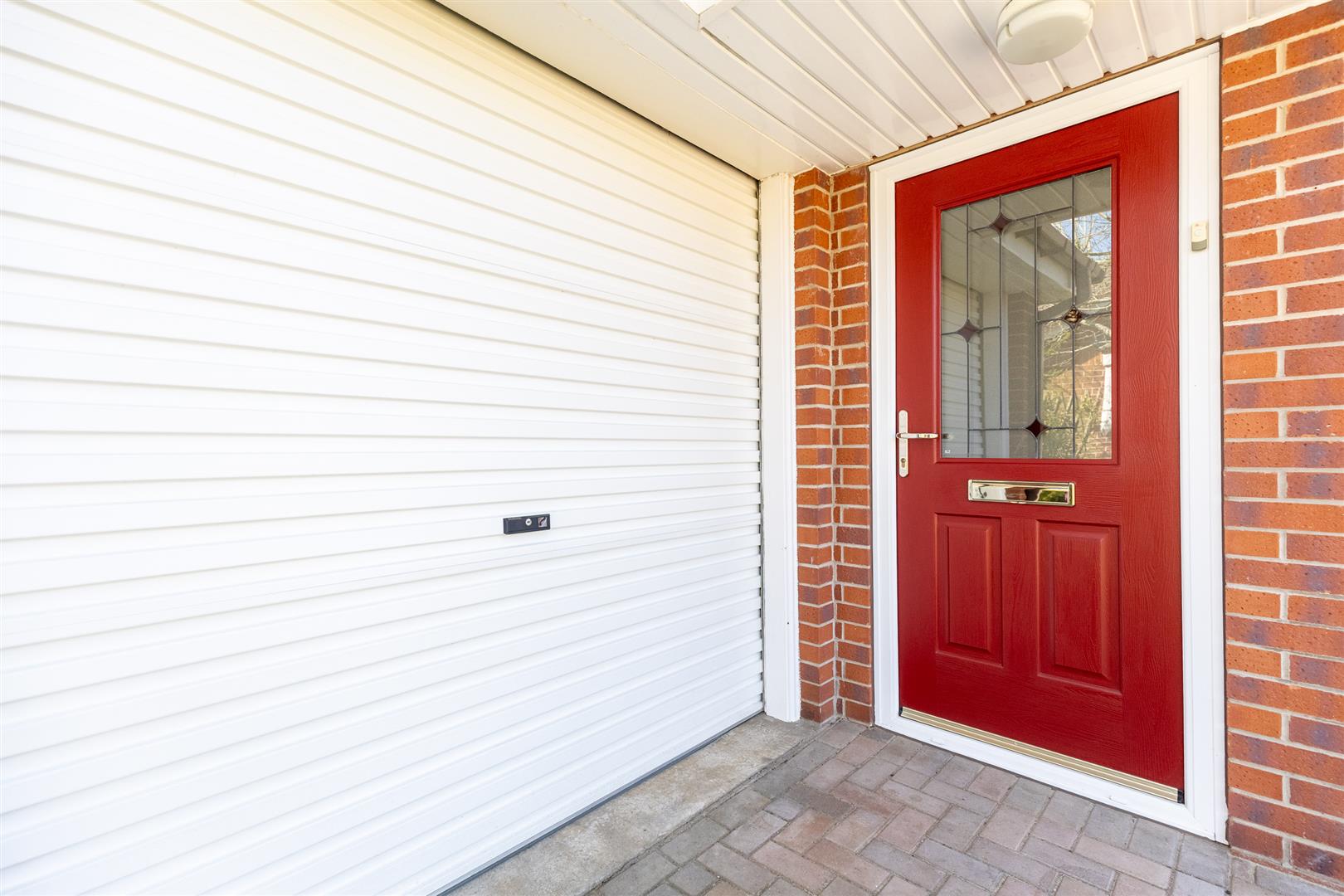 Extensive brick paving double driveway and pathways, front lawn, attached single GARAGE 17'0" x 8'1", power and light, cold water tap, Gliderol roller electric door, electricity consumer unit, uPVC side door, painted floor, side pedestrian access to security lights, paved pathway, lawned section, timber garden shed.
