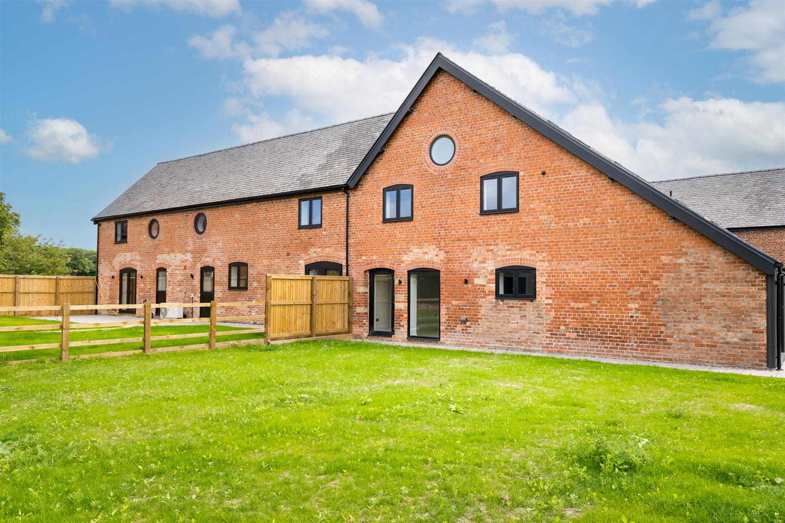 The specification of the barns includes, but is not limited to, the following: Air source heat pumps, Underfloor heating, Double garages with electric doors, Beautifully designed kitchens with Neff appliances, boiler taps and wine cooler, Lutron lighting in kitchen, diner, living area, Sonos integrated ceiling speakers to kitchen, diner, living area, Fiber broadband direct to each property, 10 years structural warranty, Electric charging points for cars, Electric gates.