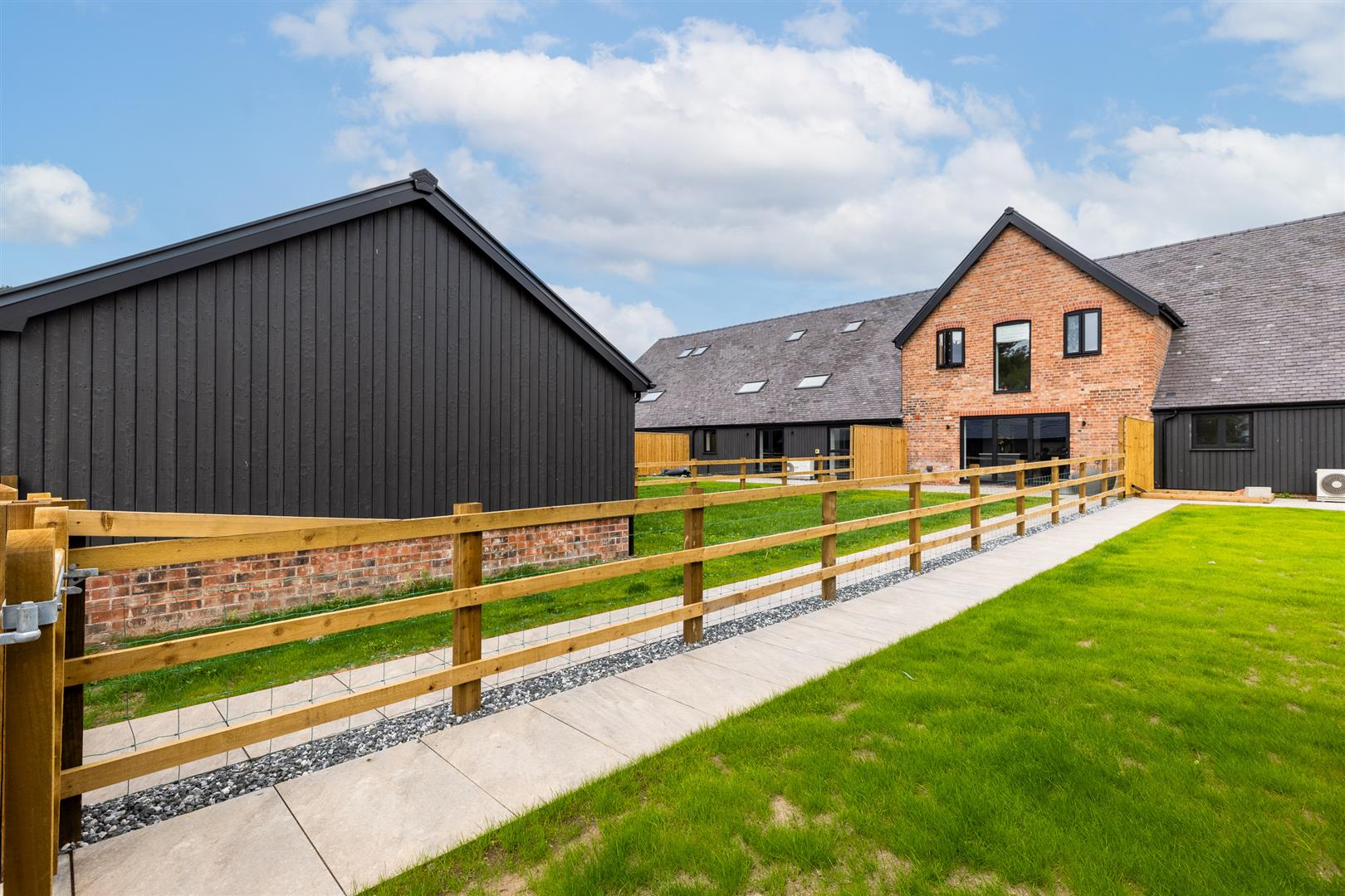 The specification of the barns includes, but is not limited to, the following: Air source heat pumps, Underfloor heating, Double garages with electric doors, Beautifully designed kitchens with Neff appliances, boiler taps and wine cooler, Lutron lighting in kitchen, diner, living area, Sonos integrated ceiling speakers to kitchen, diner, living area, Fiber broadband direct to each property, 10 years structural warranty, Electric charging points for cars, Electric gates.