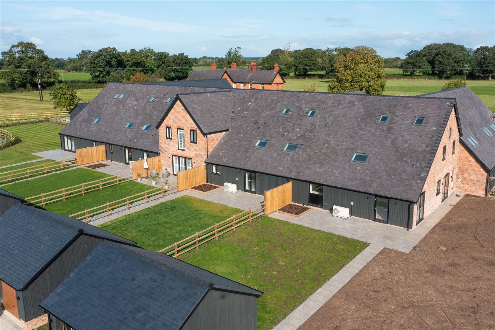 The specification of the barns includes, but is not limited to, the following: Air source heat pumps, Underfloor heating, Double garages with electric doors, Beautifully designed kitchens with Neff appliances, boiler taps and wine cooler, Lutron lighting in kitchen, diner, living area, Sonos integrated ceiling speakers to kitchen, diner, living area, Fiber broadband direct to each property, 10 years structural warranty, Electric charging points for cars, Electric gates.