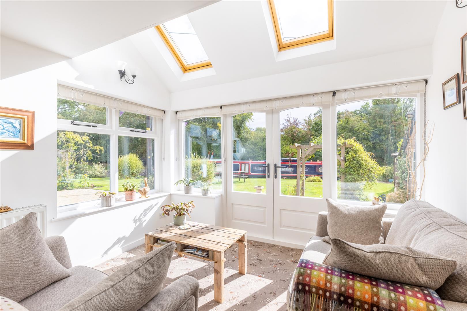 The gardens are extensively lawned with specimen trees, arch, flower and herbaceous borders. The gardens enjoy a 120 foot frontage to the LLangollen canal.