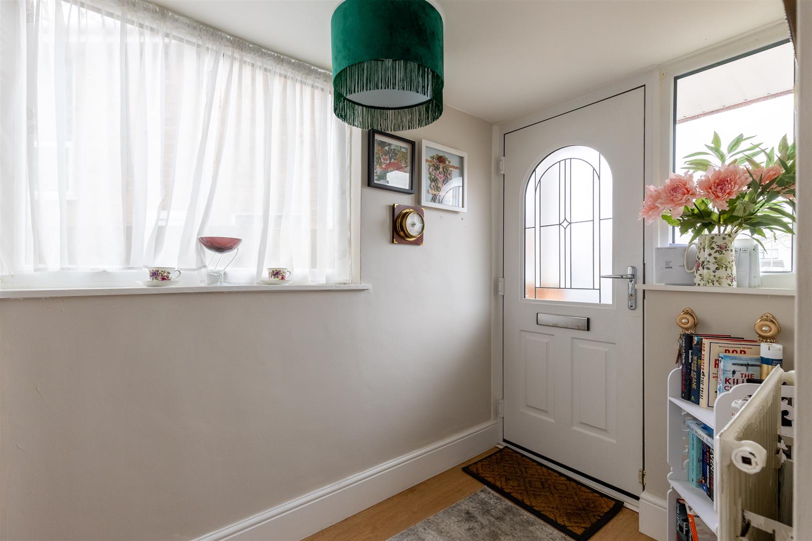 Dimensions: 2.08m x 1.45m (6'10" x 4'9"). uPVC entrance door, cloaks cupboard with shelving, radiator.