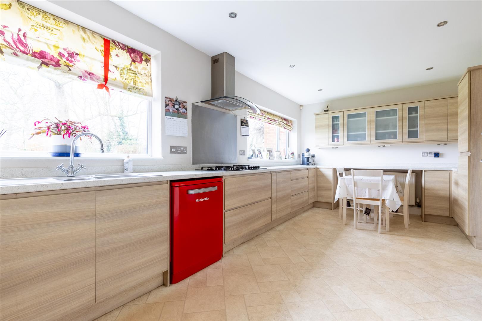 Dimensions: 5.84m x 3.33m (19'2" x 10'11" ). approximately five years old, fitted base and wall units, sliding door larder and utility cupboards ( Worcester gas fired boiler), uPVC double glazed extension door and windows overlooking school playing field. Fitted appliances. Five ring gas hob with canopy over. Double oven with grill. Dishwasher by negotiation. Radiator.
