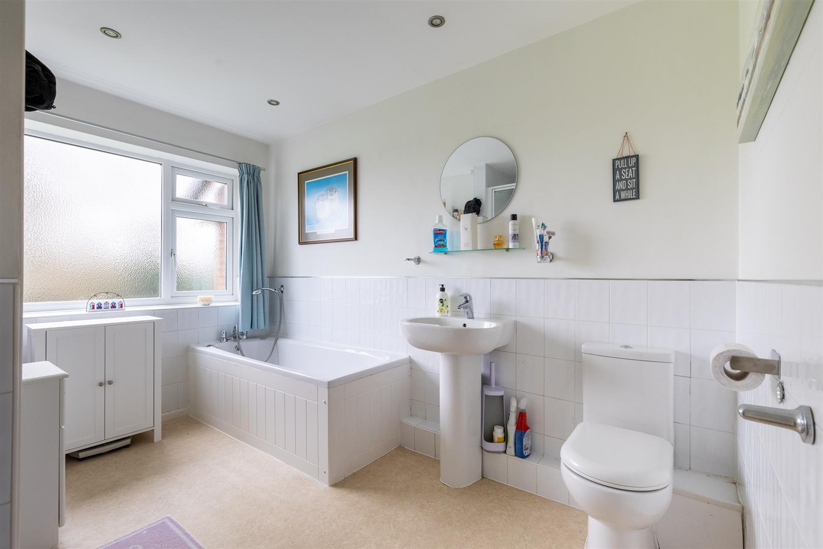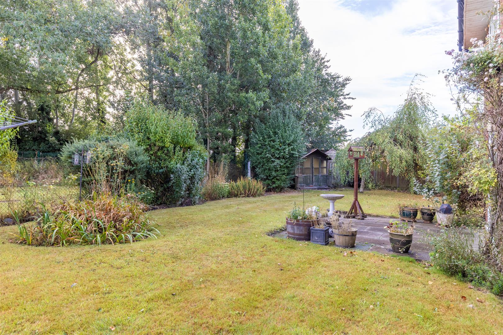 See attached plan. Front off road parking to expansive concrete pattern driveway. Standing on a generous corner plot, with a widening lawned rear garden having a variety of shrubs and trees. Paved patio and pathways to side pedestrian gate. Timber summer house and storage shed.. Adjoining the school recreational playing fields to provide a delightful open setting. Integral single garage (7’11” x 16’10”) - up-and-over door. Side personal door and side window.