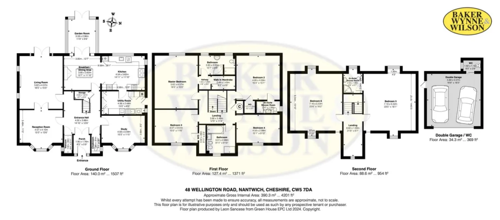 Reception Hall, Wet Room and Cloakroom, Dining Room, Drawing Room, Study, Breakfast Room, Kitchen, Utility Room, Garden Room, Under Floor Heating First Floor: Master Bedroom with Dressing Room and Ensuite Bathroom, Two Further Bedrooms, Guest Bedroom with Ensuite Shower Room, Family Bathroom, Under Floor Heating. Second Floor Accommodation: Two further bedrooms one of which has an Ensuite. Outside detached brick built garage.