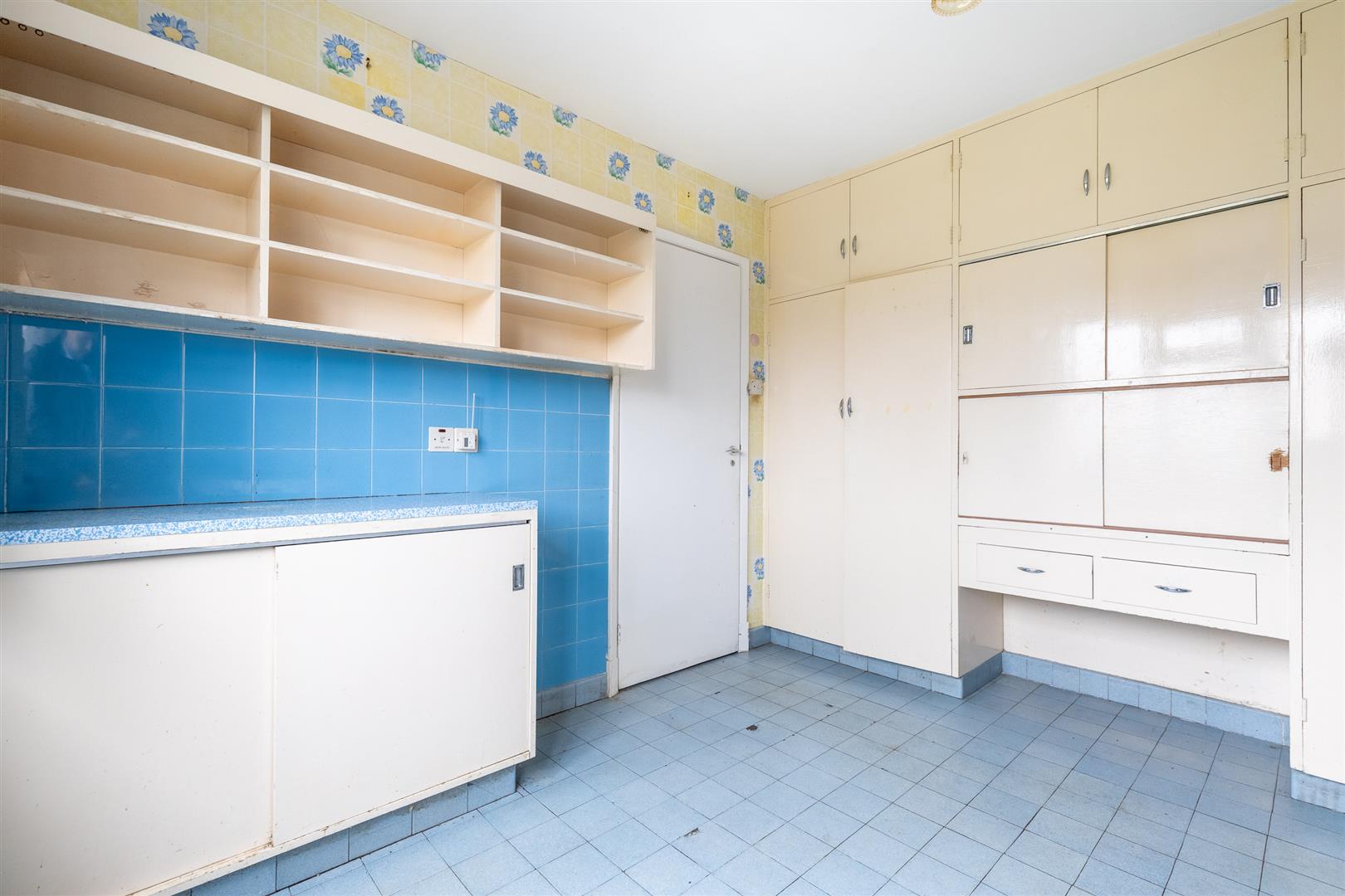 Dimensions: 5.33m x 4.42m maximum (17'6" x 14'6" maximum). Belfast sink, tiled floor, fitted shelving, three double glazed windows, hot and cold water, door to rear, Grant oil fired central heating boiler, radiator.